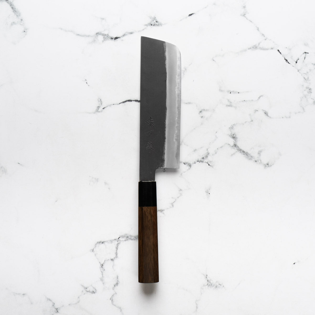 Mutsumi Hinoura Ajikataya White 2 Nakiri 165mm - Rosewood w/ Black Horn