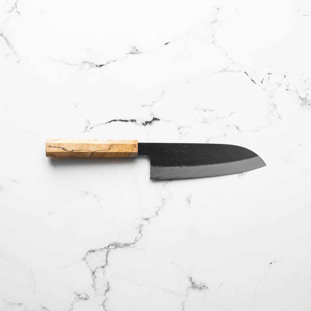 Mutsumi Hinoura Ajikataya White 2 Santoku 165mm - Spalted Maple