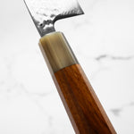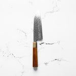 The Santoku knife, a classic in Japanese kitchens, translates to "three virtues," symbolizing its proficiency in slicing, dicing, and mincing. With a shorter, versatile blade and a balanced design, it's ideal for a range of tasks, from cutting meat to chopping vegetables, making it a beloved all-purpose tool.