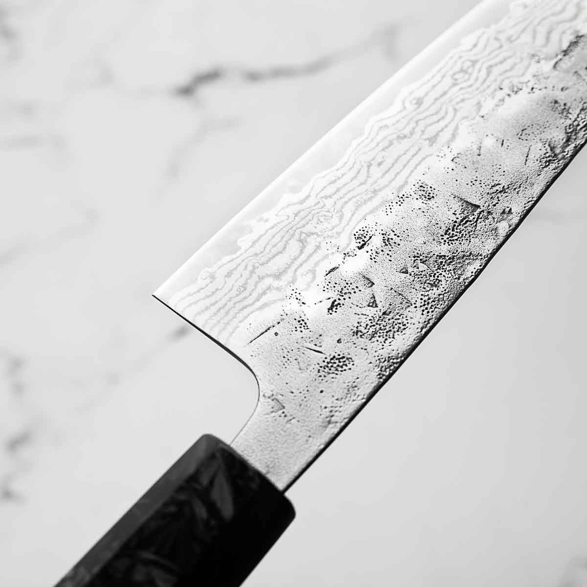 Japanese SLD steel is a semi-stainless steel crafted through advanced metallurgy. It is used often in Sanjo knives, has a non-chippy edge and is extremely tough. This high-carbon steel, enriched with chromium and molybdenum, offers excellent performance, but be mindful not to leave it wet for extended periods.