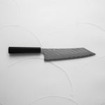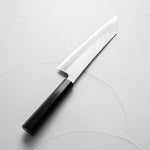 The Kiritsuke knife, a symbol of expertise in Japanese cuisine, is traditionally used by executive chefs. This multi-purpose knife combines features of a slicer and a vegetable knife, with its angled tip and long blade. It excels in precise slicing, chopping, and julienning, making it a prestigious and versatile tool.