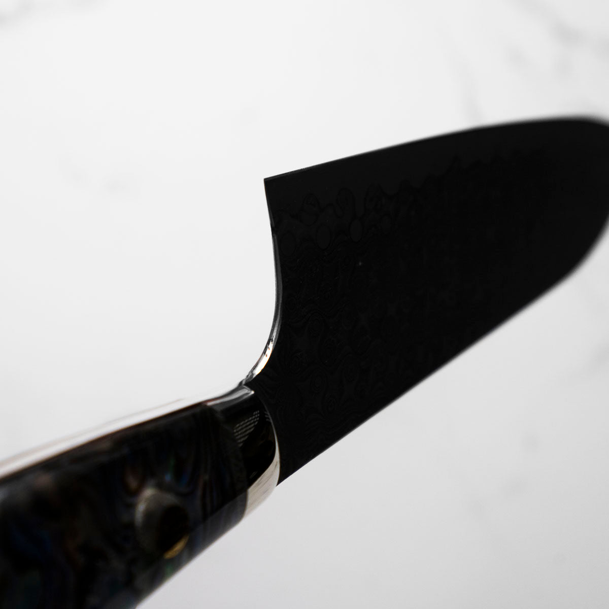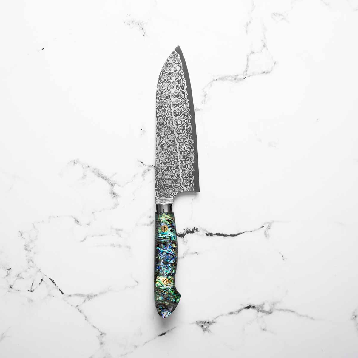 Nigara Hamono "Anmon" SG2 Damascus Santoku 180mm - Western Abalone Handle