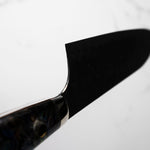 The Santoku knife, a classic in Japanese kitchens, translates to "three virtues," symbolizing its proficiency in slicing, dicing, and mincing. With a shorter, versatile blade and a balanced design, it's ideal for a range of tasks, from cutting meat to chopping vegetables, making it a beloved all-purpose tool.