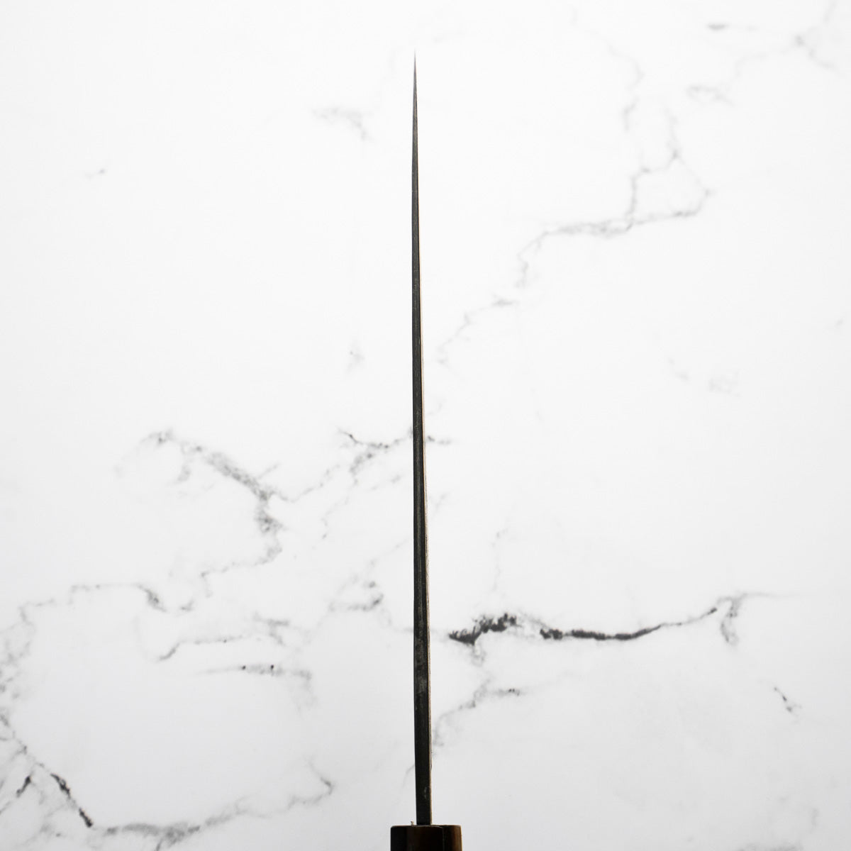 This knife is made from a high-carbon steel and as such, will require a little more care than a regular off-the-shelf knife. It must be dried shortly after use, as prolonged exposure to moisture can cause rust spots to appear. A very light coat of oil during storage also helps to prevent rust spots. A patina (colouration and seasoning of the steel) will occur with use.