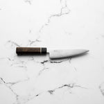 A paring knife, sometimes also known as a petty knife, is a small yet versatile tool, ideal for precise culinary tasks. Traditionally used for peeling, shaping, and delicate cutting, its compact size and sharp edge allow for meticulous control, making it essential for detailed work in fruits, vegetables, and garnishes.