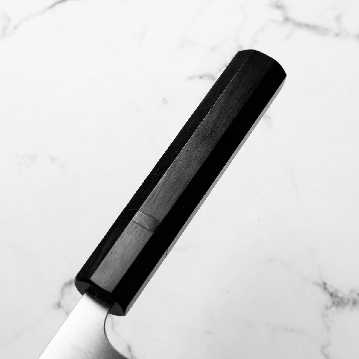 Chromax is a high-end, powdered metallurgy semi stainless steel and one of the finest knife-making steels available in Japan. Its fine, uniform grain structure enables razor-sharp edges, all the while holding an edge for much longer than Carbon steel knives, without needing to be concerned about rust appearing.