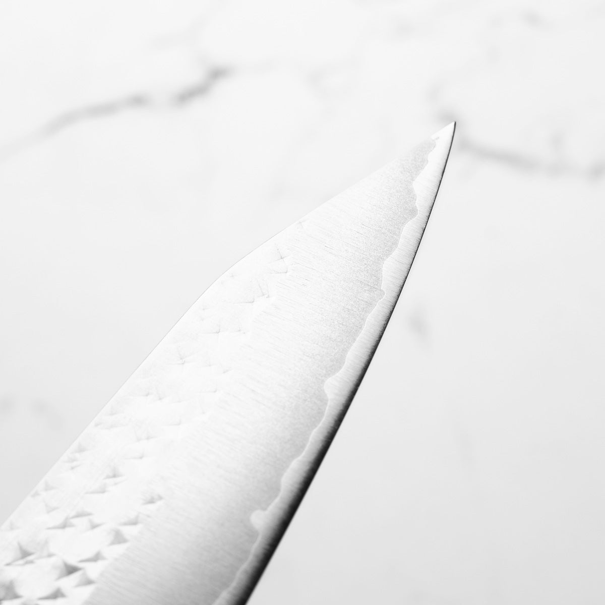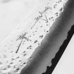 His knives are instantly recognizable for their striking Tsuchime and Suminagashi finishes, thin grinds, and use of high-performance steels such as SG2, HAP40, and stainless-clad Blue Super. Kurosaki’s Fujin series, with its dramatic wind-patterned hammer finish, helped cement his reputation as a blacksmith who blends artistry and technical brilliance in equal measure.