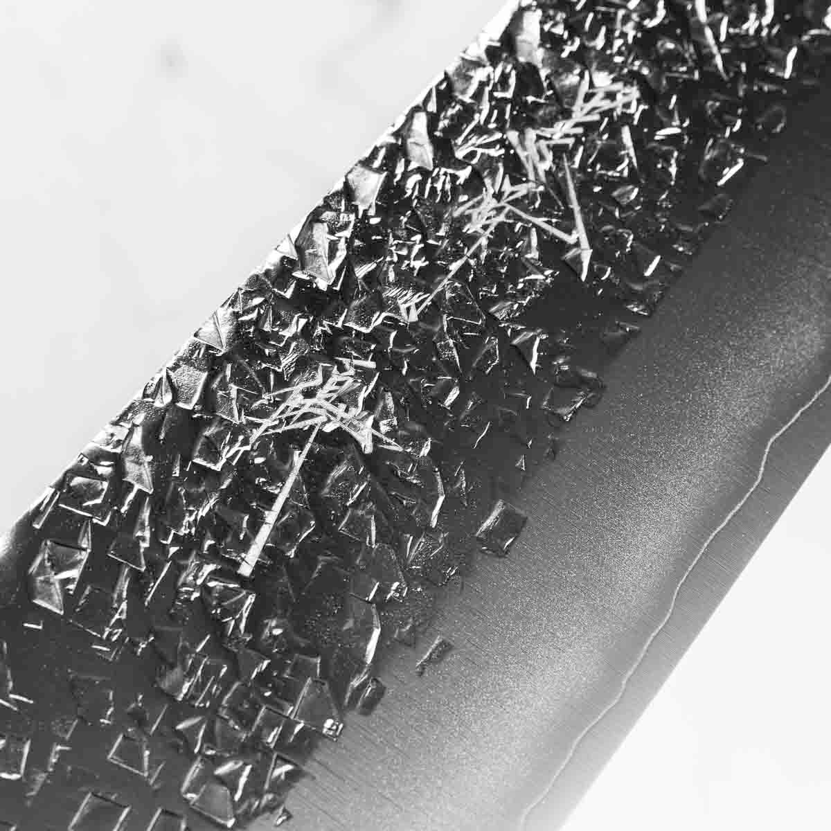 Japanese SG2, also known as R2 steel, is a high-end, powdered metallurgy stainless steel and one of the finest knife-making steels available in Japan. It is a favourite of many for its exceptional hardness and edge retention. Its fine, uniform grain structure enables razor-sharp edges, all the while holding an edge for much longer than Carbon steel knives, without needing to be concerned about rust appearing.