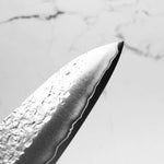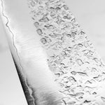 His knives are instantly recognizable for their striking Tsuchime and Suminagashi finishes, thin grinds, and use of high-performance steels such as SG2, HAP40, and stainless-clad Blue Super. Kurosaki’s Fujin series, with its dramatic wind-patterned hammer finish, helped cement his reputation as a blacksmith who blends artistry and technical brilliance in equal measure.