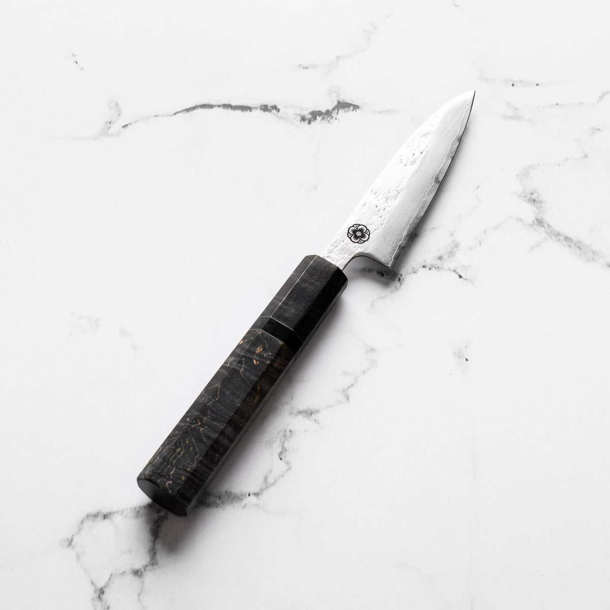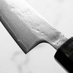 The Petty knife, a quintessential tool in Japanese cuisine, is a smaller utility knife used for precise, delicate tasks. Often considered a smaller sibling to the chef's knife, it excels in hand-held tasks like peeling, trimming, and intricate cutting. Its versatility makes it an essential for detailed culinary work.