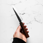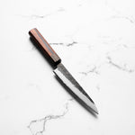 The Petty knife, a quintessential tool in Japanese cuisine, is a smaller utility knife used for precise, delicate tasks. Often considered a smaller sibling to the chef's knife, it excels in hand-held tasks like peeling, trimming, and intricate cutting. Its versatility makes it an essential for detailed culinary work.