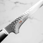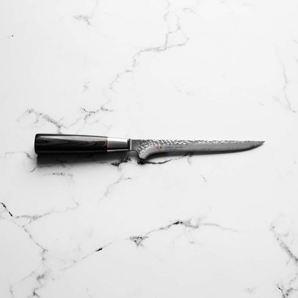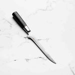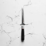 The boning knife, a specialized kitchen tool, is designed for separating meat from bones and trimming fat. With its shorter, flexible blade, typically ranging from 130mm to 160mm, it excels in maneuvering around joints and contours, allowing for precision in intricate cutting tasks. Its design ensures optimal control and accuracy, making it perfect for butchering and filleting various proteins, including poultry and fish.