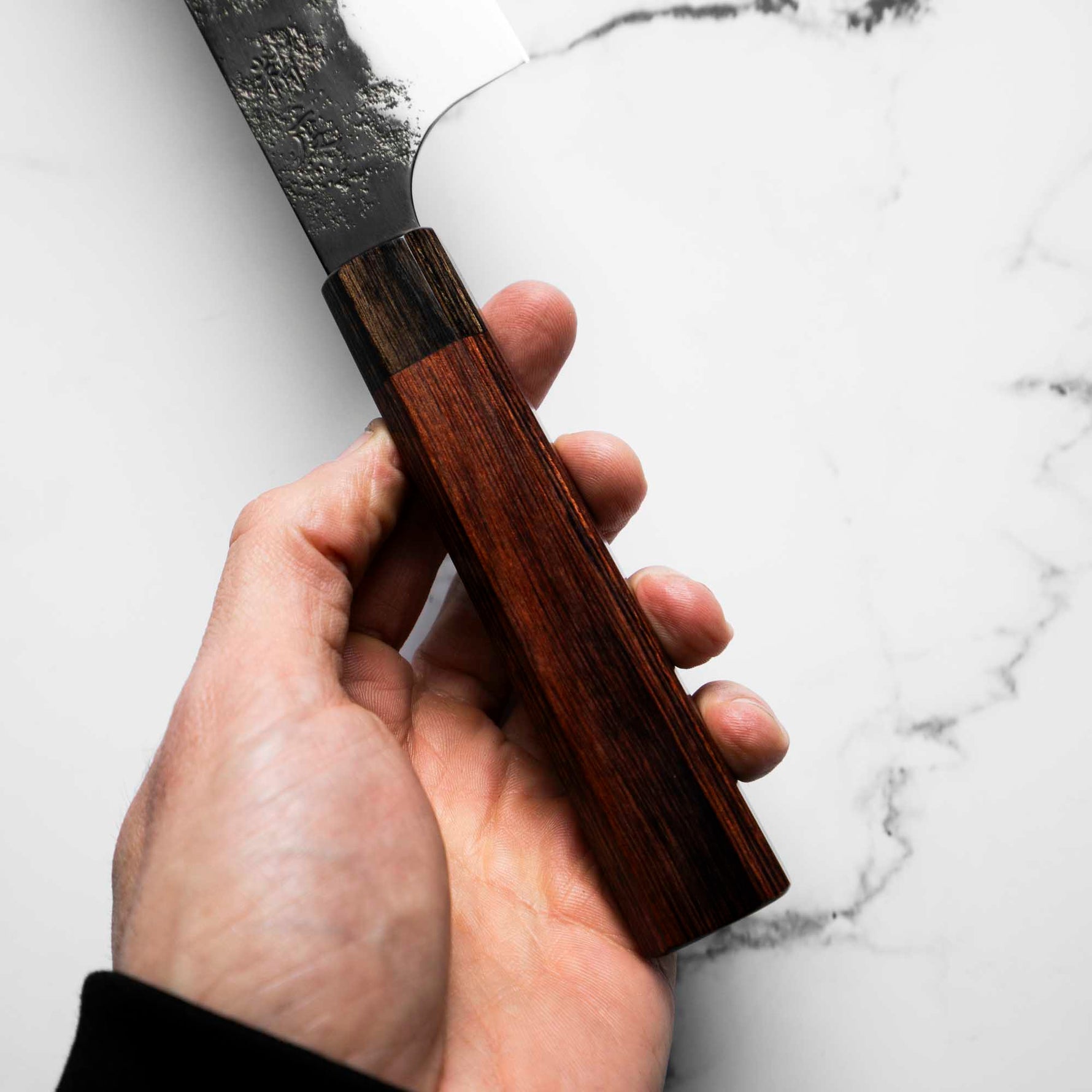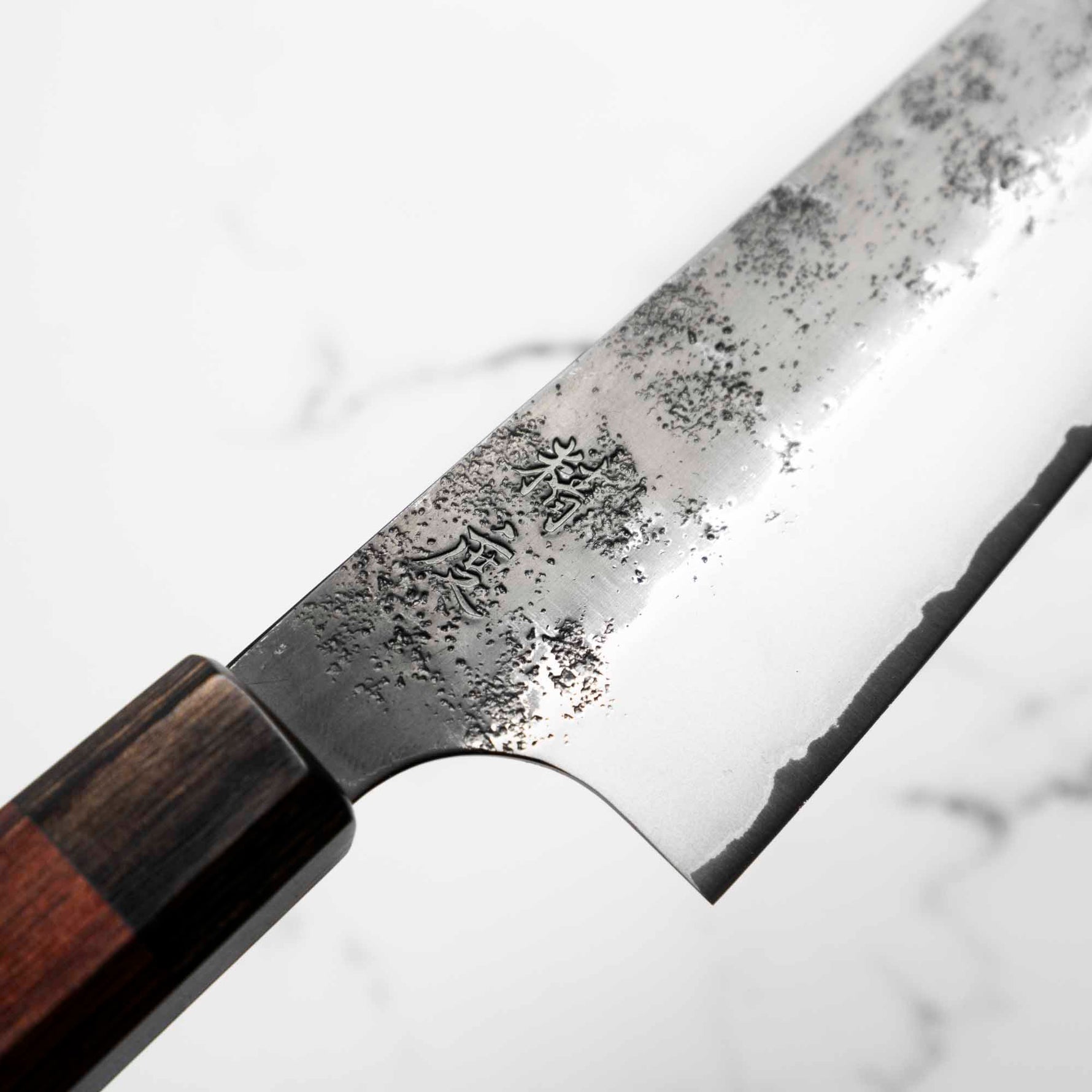 Japanese SG2, also known as R2 steel, is a high-end, powder metallurgy stainless steel and one of the finest knife-making steels available in Japan. It is a favorite of many for its exceptional hardness and edge retention. Its fine, uniform grain structure enables razor-sharp edges, all the while holding an edge for much longer than Carbon steel knives, without needing to be concerned about rust appearing.