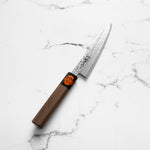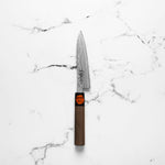 The Petty knife, a quintessential tool in Japanese cuisine, is a smaller utility knife used for precise, delicate tasks. Often considered a smaller sibling to the chef's knife, it excels in hand-held tasks like peeling, trimming, and intricate cutting. Its versatility makes it an essential for detailed culinary work.