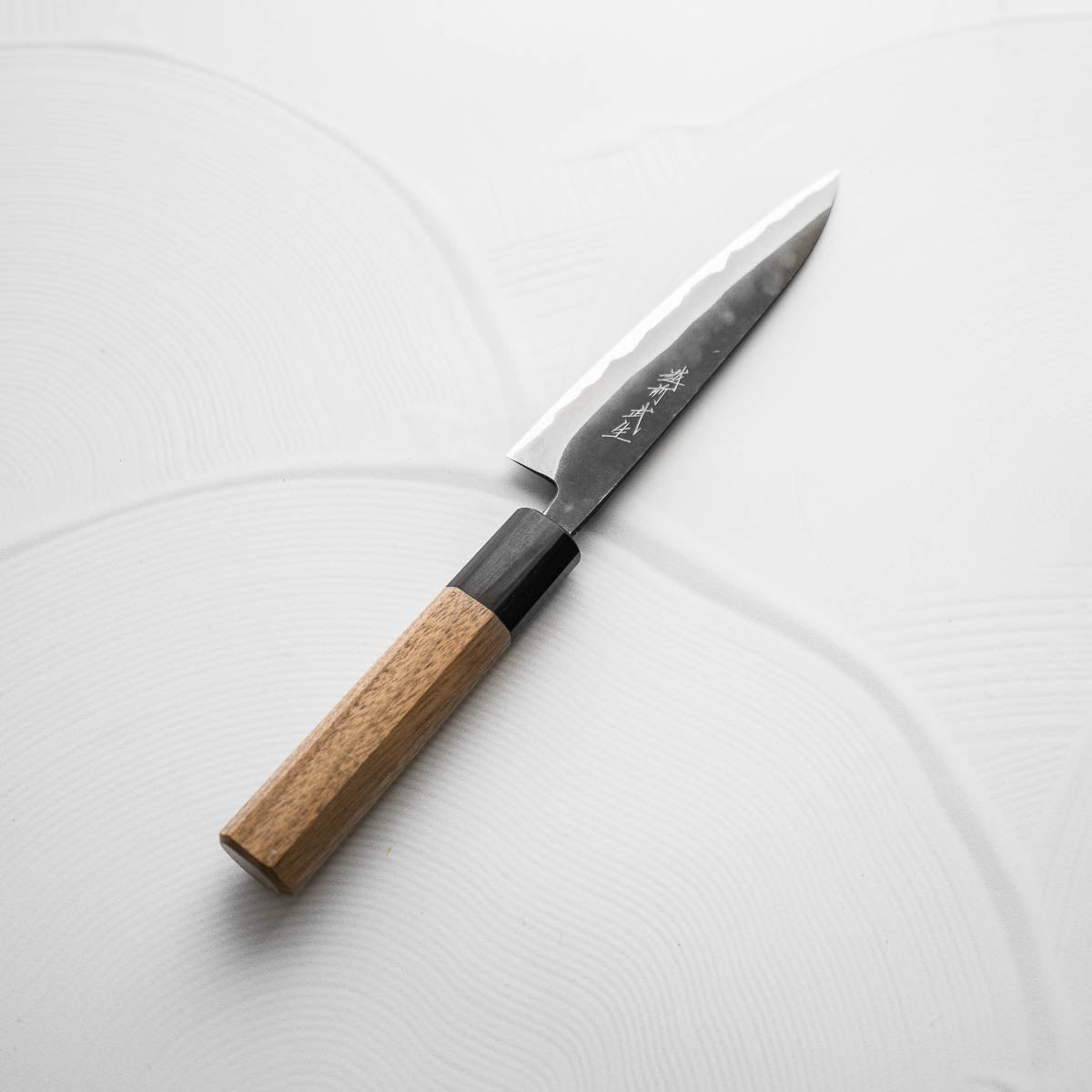 Shiro Kamo Blue Super SS Clad Kurouchi Petty 135mm