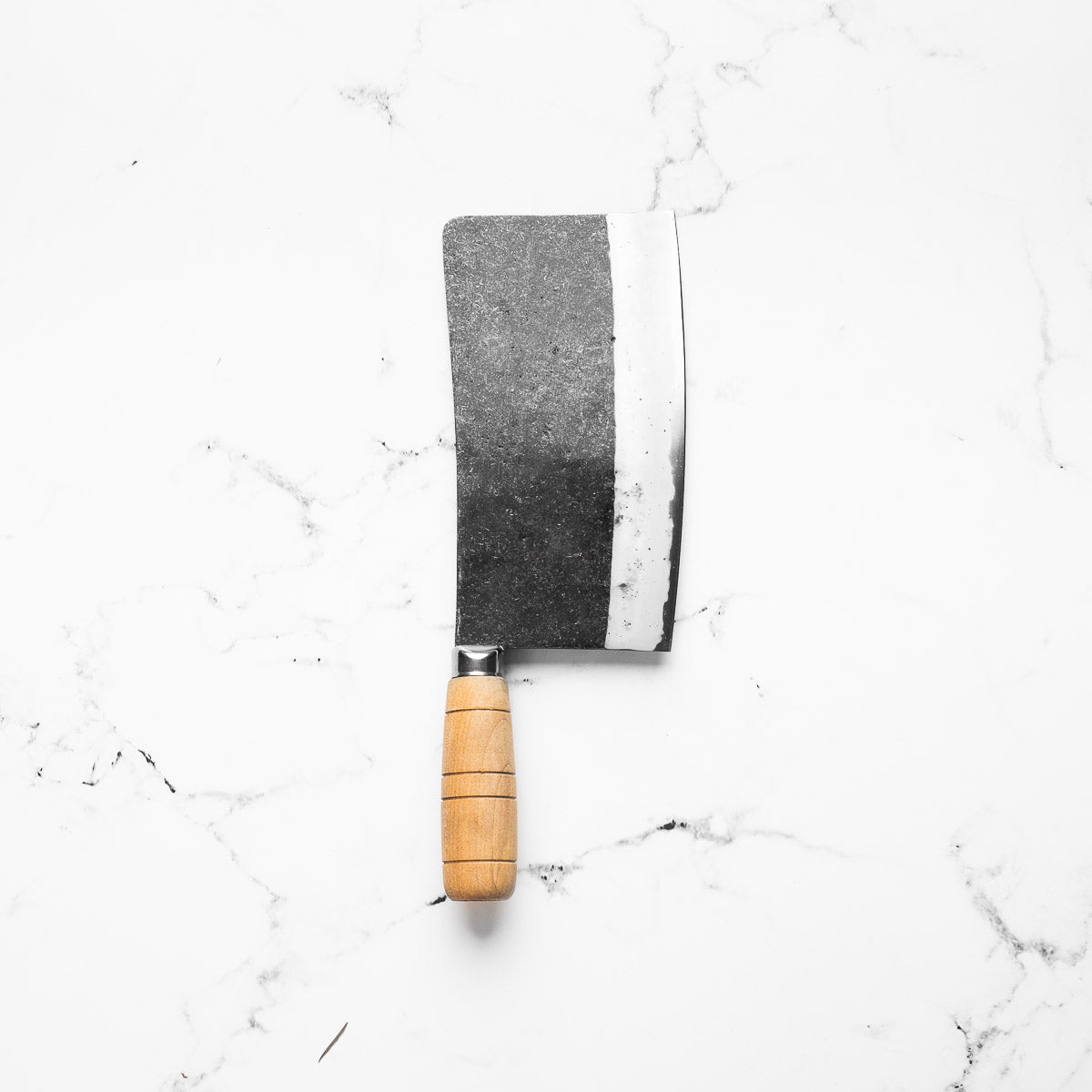This knife is made from a high-carbon steel and as such, will require a little more care than a regular off-the-shelf knife. It must be dried shortly after use, as prolonged exposure to moisture can cause rust spots to appear. A very light coat of oil during storage also helps to prevent rust spots. A patina (colouration and seasoning of the steel) will occur with use.