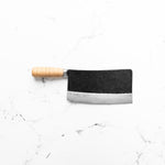 A Japanese butcher cleaver, distinct from its Western counterpart, is a specialized tool designed for precision meat cutting. It features a robust, wide blade adept at slicing through large cuts of meat and bones with ease and efficiency. This cleaver combines traditional Japanese craftsmanship with functionality, essential for professional butchery.