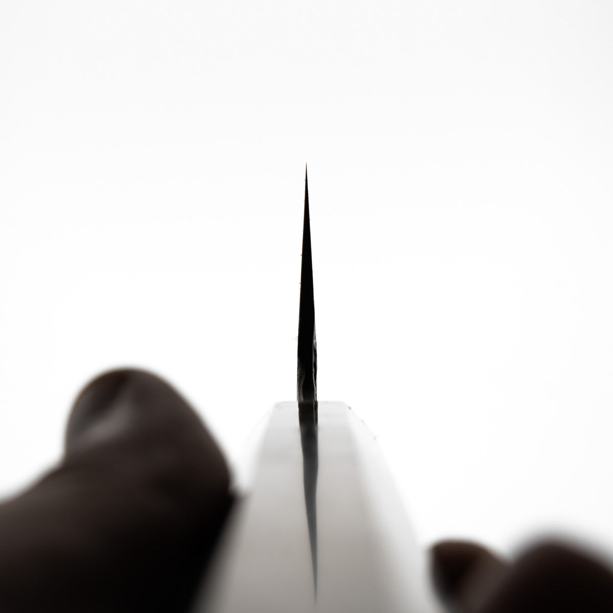 Embracing a rapid rise in popularity for his unique designs and committment to striving for perfection, Shunsuke Manaka is the man behind Kisuke knives. From the sketchbook to the kitchen, he is the sole craftsman behind the entire knifemaking process. Shunsuke engineers these knives using a process known as Warikomi, whereby a glowing hot piece of steel is split, and the core steel is wedged in and forged together. The split steel becomes the outer layers, and the core steel is exposed at the edge. This process produces a stronger, tougher more durable blade.
