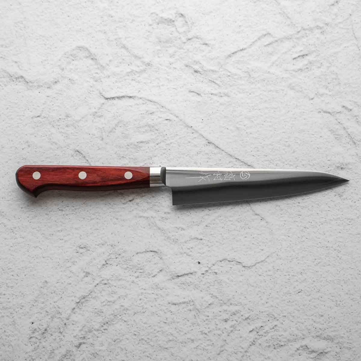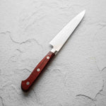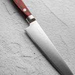 The Petty knife, a quintessential tool in Japanese cuisine, is a smaller utility knife used for precise, delicate tasks. Often considered a smaller sibling to the chef's knife, it excels in hand-held tasks like peeling, trimming, and intricate cutting. Its versatility makes it an essential for detailed culinary work.