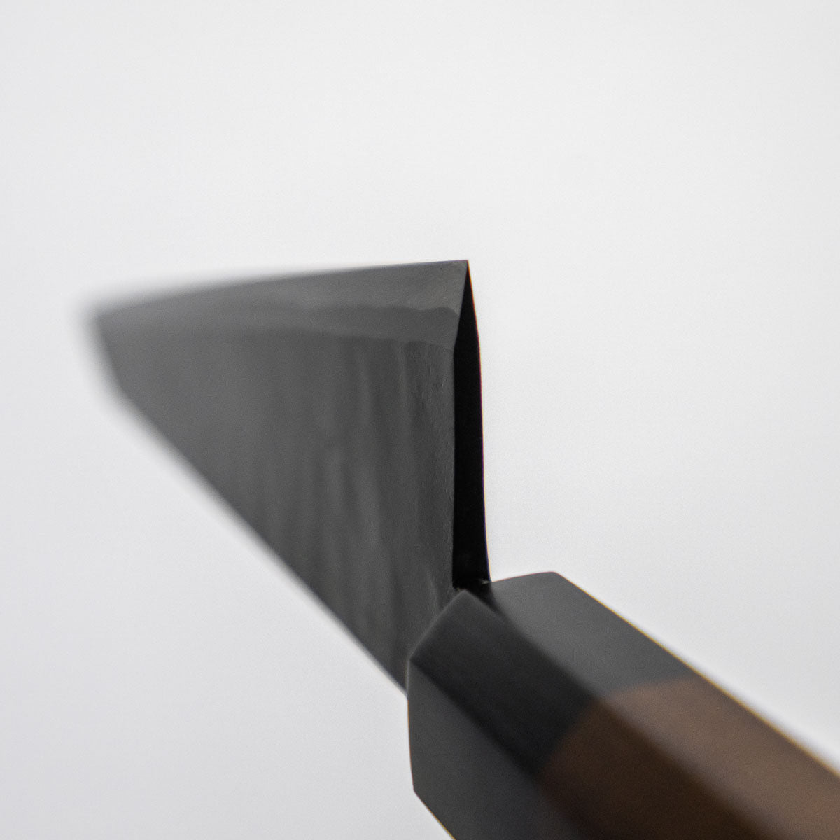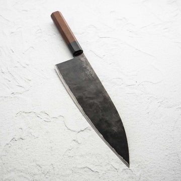Takeda’s knives are instantly recognizable — tall, kurouchi-finished blades, incredibly lightweight, and ground to an ultra-low bevel that delivers outstanding cutting performance. Often forged from Aogami Super Steel (NAS), these knives are known for holding a razor-sharp edge while being remarkably easy to maintain.