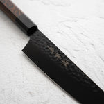 The Bunka knife, a versatile and traditional Japanese kitchen tool, features a distinctive, angular tip and a wide blade. It's designed for precision tasks like slicing, dicing, and chopping. Ideal for handling vegetables, meat, and fish, the Bunka is a multifunctional knife celebrated for its utility and unique aesthetic.