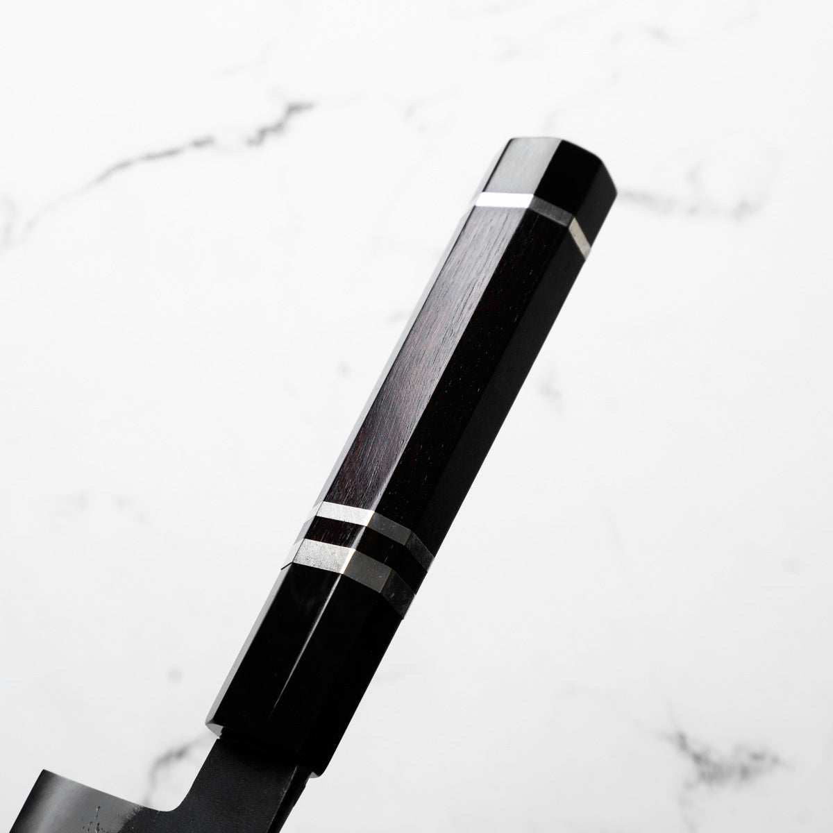 Mutsumi Hinoura Ajikataya White 2 Gyuto 210mm - Ebony & Double Black Horn Triple Ring