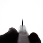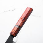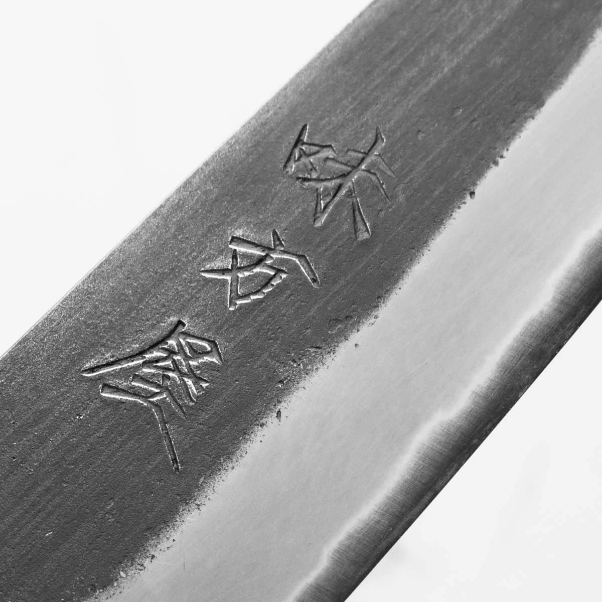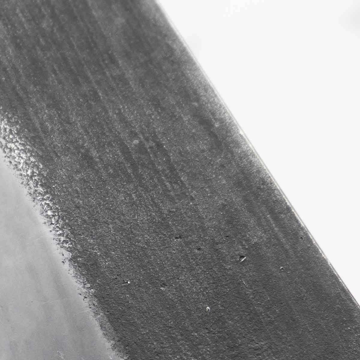 Japanese White Steel #2, a traditional high-carbon steel, is cherished for its purity and fine grain structure, enabling razor-sharp edges, at the cost of being reactive. It is one of the easiest steels to sharpen, but cannot be left wet for even short periods otherwise rust spots can occur. If you’re fastidious in your knife maintenance, this knife steel can be extremely rewarding to use.