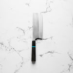 The Nakiri knife, revered in Japanese culinary traditions, is engineered for exceptional vegetable cutting. Featuring a distinct, straight-edged, and rectangular blade, it excels in creating uniform, precise cuts and aesthetic presentation. Its technical design ensures efficiency and precision, making it a valuable tool for both professional chefs and home cooks.