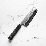 The Nakiri knife, revered in Japanese culinary traditions, is engineered for exceptional vegetable cutting. Featuring a distinct, straight-edged, and rectangular blade, it excels in creating uniform, precise cuts and aesthetic presentation. Its technical design ensures efficiency and precision, making it a valuable tool for both professional chefs and home cooks.