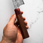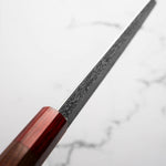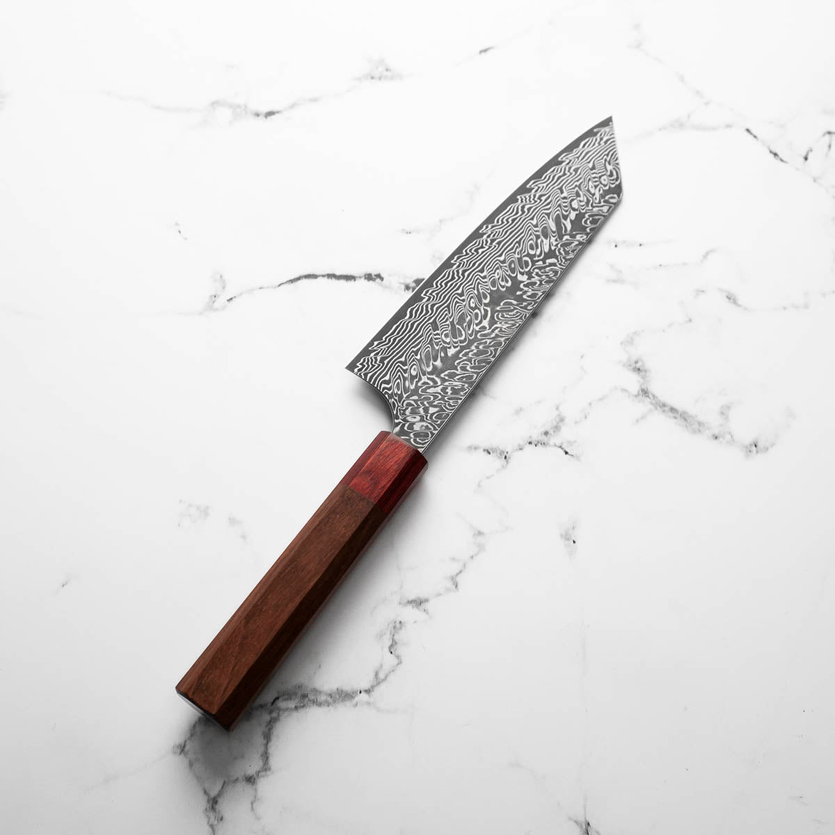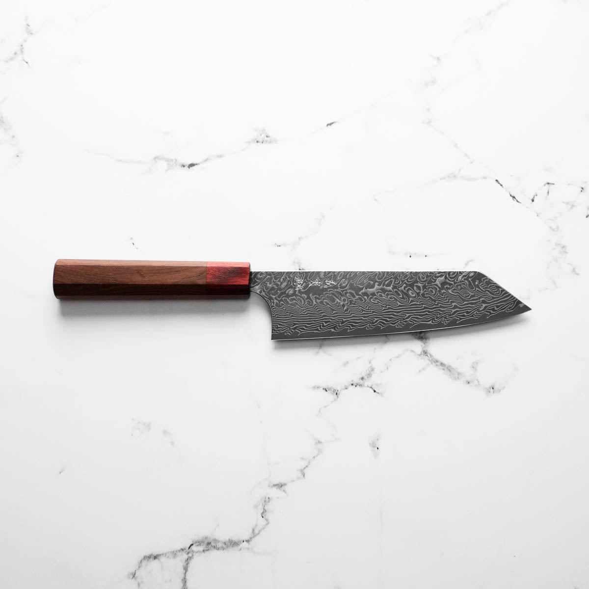 The Bunka knife, a versatile and traditional Japanese kitchen tool, features a distinctive, angular tip and a wide blade. It's designed for precision tasks like slicing, dicing, and chopping. Ideal for handling vegetables, meat, and fish, the Bunka is a multifunctional knife celebrated for its utility and unique aesthetic.