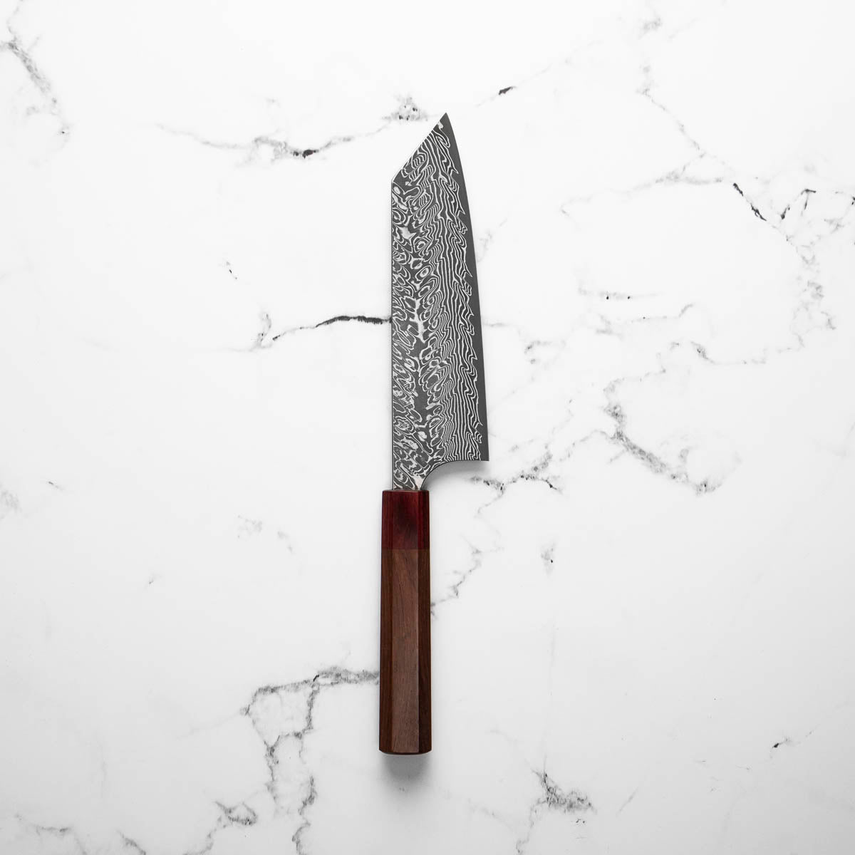 Under his personal brand Kintaro, he hand-forges blades featuring some of the most striking Damascus patterns we’ve seen, with crisp lines and elegant finishes. His knives are lightweight, thin behind the edge, and a pleasure to sharpen and maintain — a combination that makes them equally suited to professional kitchens and passionate home cooks.