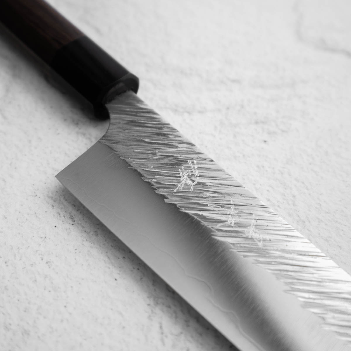 Yu Kurosaki is now one of the most well-known blacksmiths in Japan. He experienced a rapid rise to fame through his beautiful knife aesthetics, his thin grinds, and use of exotic steels like SG2, HAP40, and stainless-clad Blue Super. The Fujin was among one of the first lines of his that contributed to this fame. The striking Tsuchime finish is now instantly recognizable and is truly a piece to be experienced first-hand.