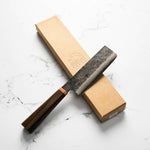 Japanese Blue Steel #2, or "Aogami" #2, is a revered high-carbon steel alloyed with low amounts of chromium and tungsten. It strikes an excellent balance between durability, edge retention, and ease of sharpening. Slightly more ductile than Blue #1, it's widely used in crafting traditional Japanese knives, beloved by chefs for its resilience and sharpness, albeit is slightly softer than Blue 1.