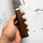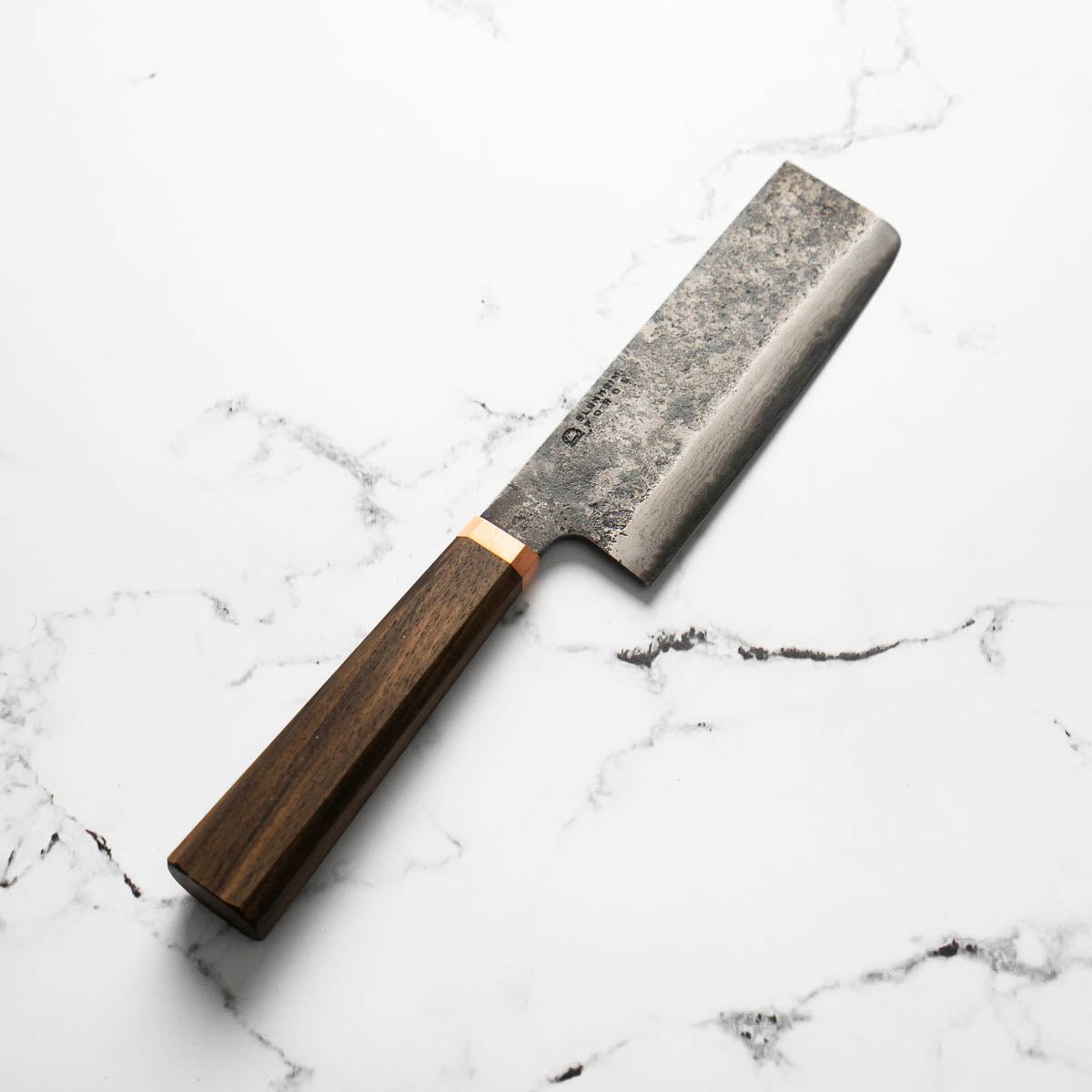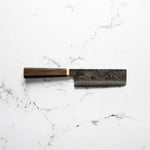 The Nakiri knife, revered in Japanese culinary traditions, is engineered for exceptional vegetable cutting. Featuring a distinct, straight-edged, and rectangular blade, it excels in creating uniform, precise cuts and aesthetic presentation. Its technical design ensures efficiency and precision, making it a valuable tool for both professional chefs and home cooks.