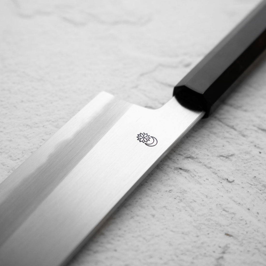 Japanese White Steel #2, a traditional high-carbon steel, is cherished for its purity and fine grain structure, enabling razor-sharp edges, at the cost of being reactive. It is one of the easiest steels to sharpen, but cannot be left wet for even short periods otherwise rust spots can occur. If you’re fastidious in your knife maintenance, this knife can steel can be extremely rewarding to use.