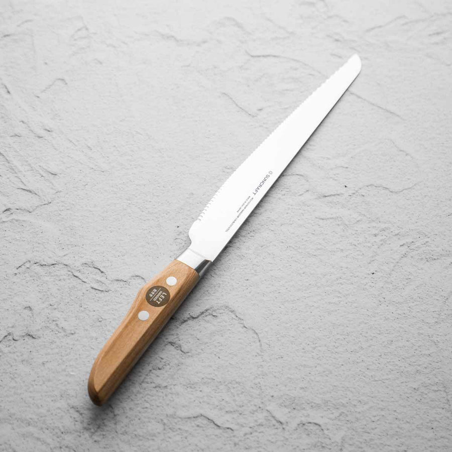 The bread knife is commonly used for, you guessed it cutting bread. Almost exclusivley cerated they are great for all kind of bread and pasteries soft and hard.