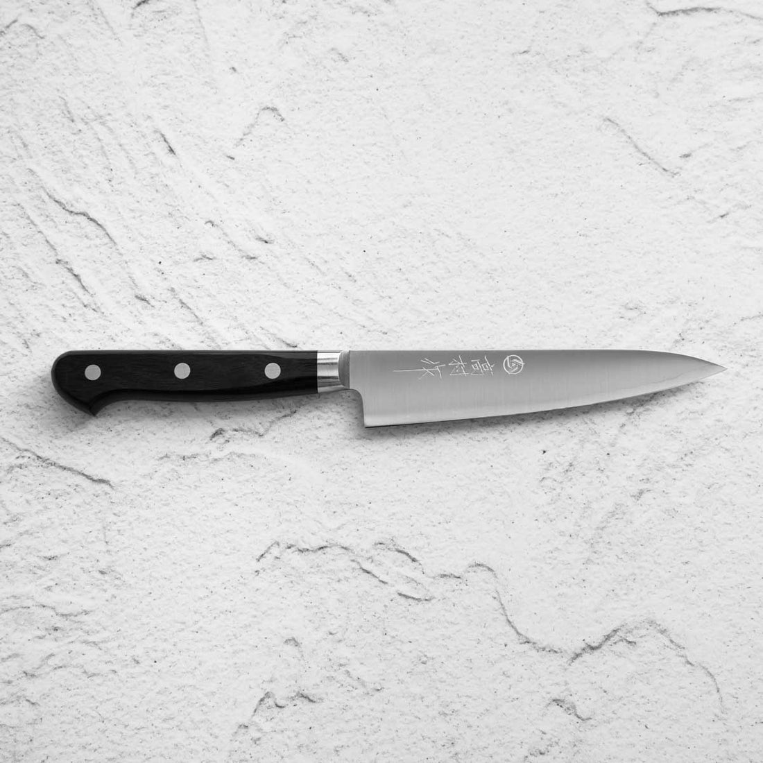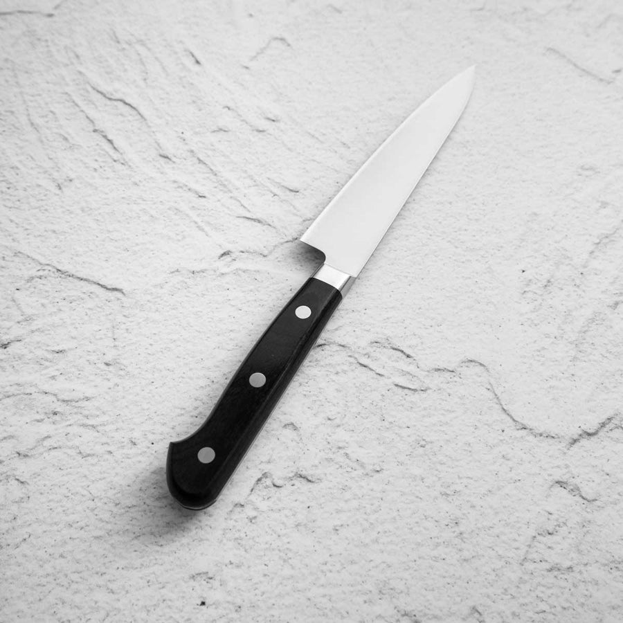 The Petty knife, a quintessential tool in Japanese cuisine, is a smaller utility knife used for precise, delicate tasks. Often considered a smaller sibling to the chef's knife, it excels in hand-held tasks like peeling, trimming, and intricate cutting. Its versatility makes it an essential for detailed culinary work.