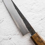 The Petty knife, a quintessential tool in Japanese cuisine, is a smaller utility knife used for precise, delicate tasks. Often considered a smaller sibling to the chef's knife, it excels in hand-held tasks like peeling, trimming, and intricate cutting. Its versatility makes it an essential for detailed culinary work.