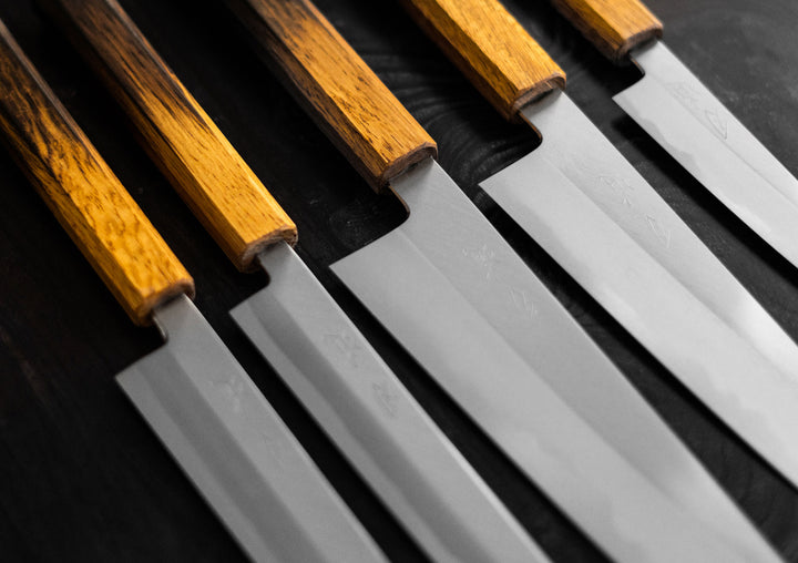 Japanese Blue Steel #1, known as "Aogami" #1, is a premium high-carbon steel enriched with tungsten and chromium. It has seen a recent surge in popularity and is now used by many top-tier knife makers for its superior edge retention and durability. It also offers a unique balance of toughness and sharpness. This steel is highly valued in crafting traditional Japanese knives, especially for professional use.