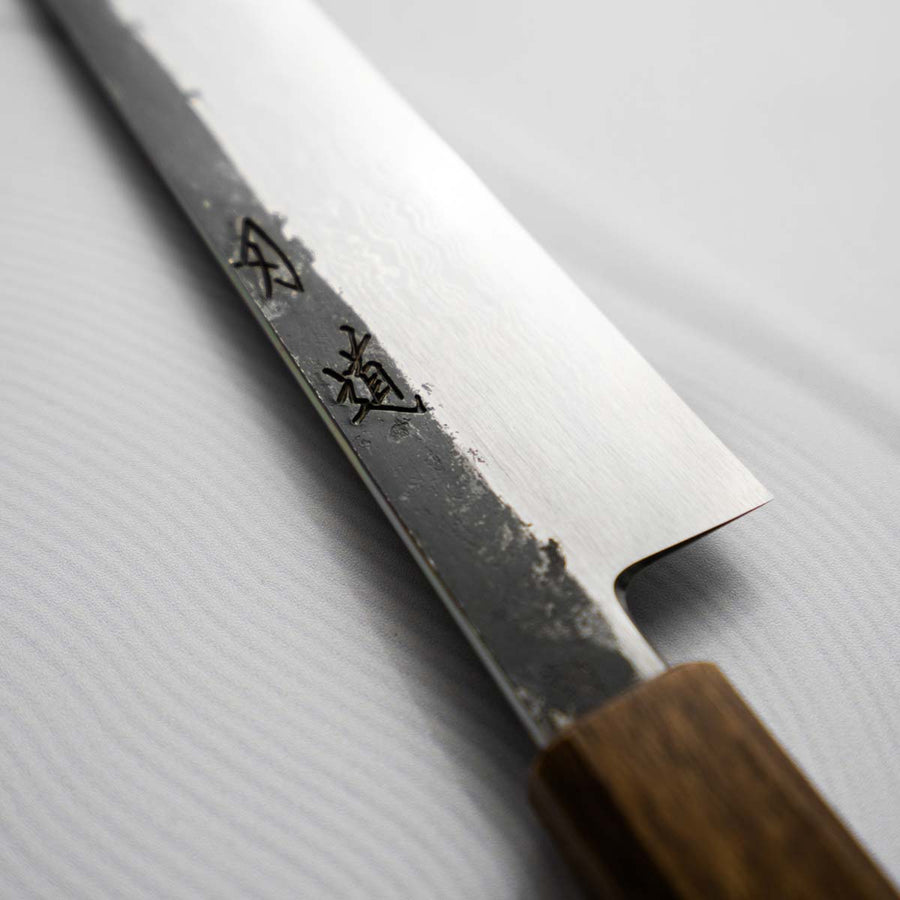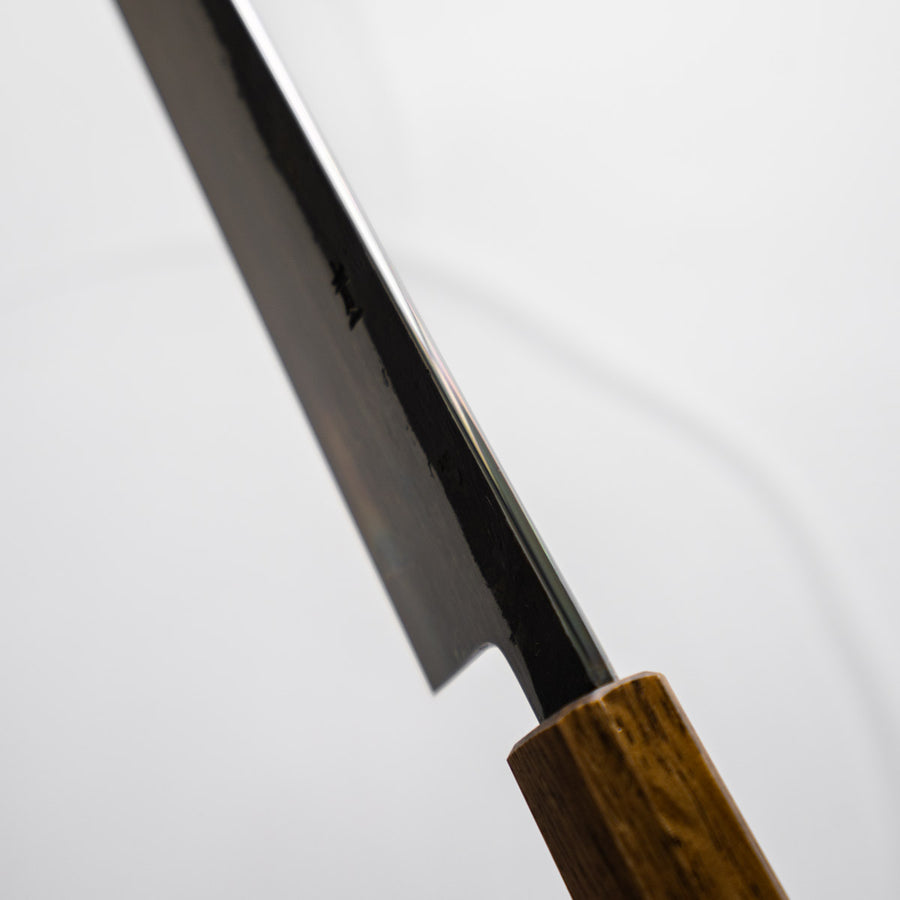The Sujihiki knife, a traditional Japanese slicer, is designed for carving and fileting. With its long, narrow blade, typically ranging from 240mm to 330mm, it excels in creating clean, smooth cuts through meat and fish. Its length ensures long, uninterrupted strokes, making it perfect for precise slicing tasks.