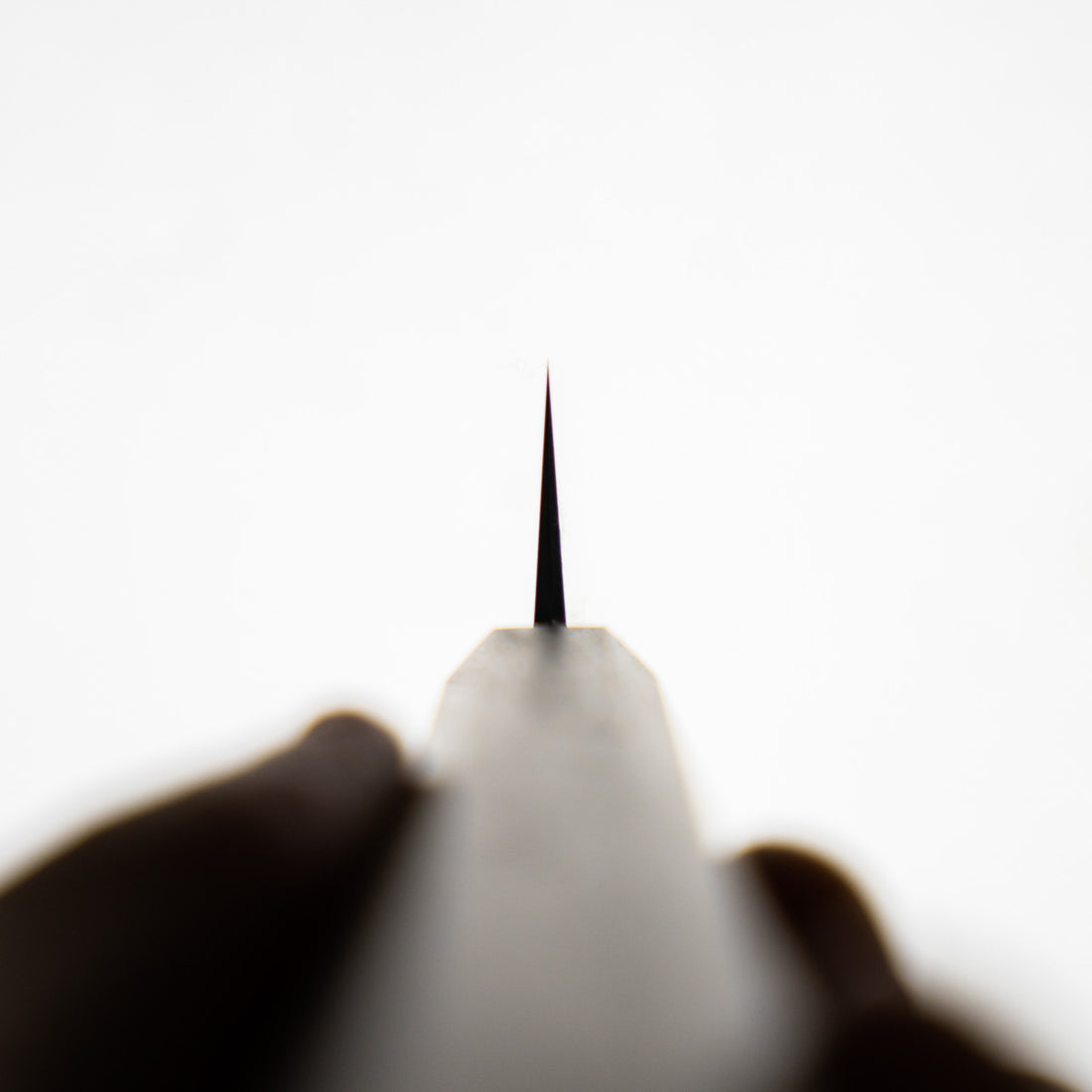 This knife is made from a high-carbon steel and as such, will require a little more care than a regular off-the-shelf knife. It must be dried shortly after use, as prolonged exposure to moisture can cause rust spots to appear. A very light coat of oil during storage also helps to prevent rust spots. A patina (colouration and seasoning of the steel) will occur with use.