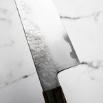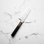 The Bunka knife, a versatile and traditional Japanese kitchen tool, features a distinctive, angular tip and a wide blade. It's designed for precision tasks like slicing, dicing, and chopping. Ideal for handling vegetables, meat, and fish, the Bunka is a multifunctional knife celebrated for its utility and unique aesthetic.