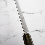 Japanese SG2, also known as R2 steel, is a high-end, powder metallurgy stainless steel and one of the finest knife-making steels available in Japan. It is a favorite of many for its exceptional hardness and edge retention. Its fine, uniform grain structure enables razor-sharp edges, all the while holding an edge for much longer than Carbon steel knives, without needing to be concerned about rust appearing.