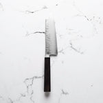 The Bunka knife, a versatile and traditional Japanese kitchen tool, features a distinctive, angular tip and a wide blade. It's designed for precision tasks like slicing, dicing, and chopping. Ideal for handling vegetables, meat, and fish, the Bunka is a multifunctional knife celebrated for its utility and unique aesthetic.