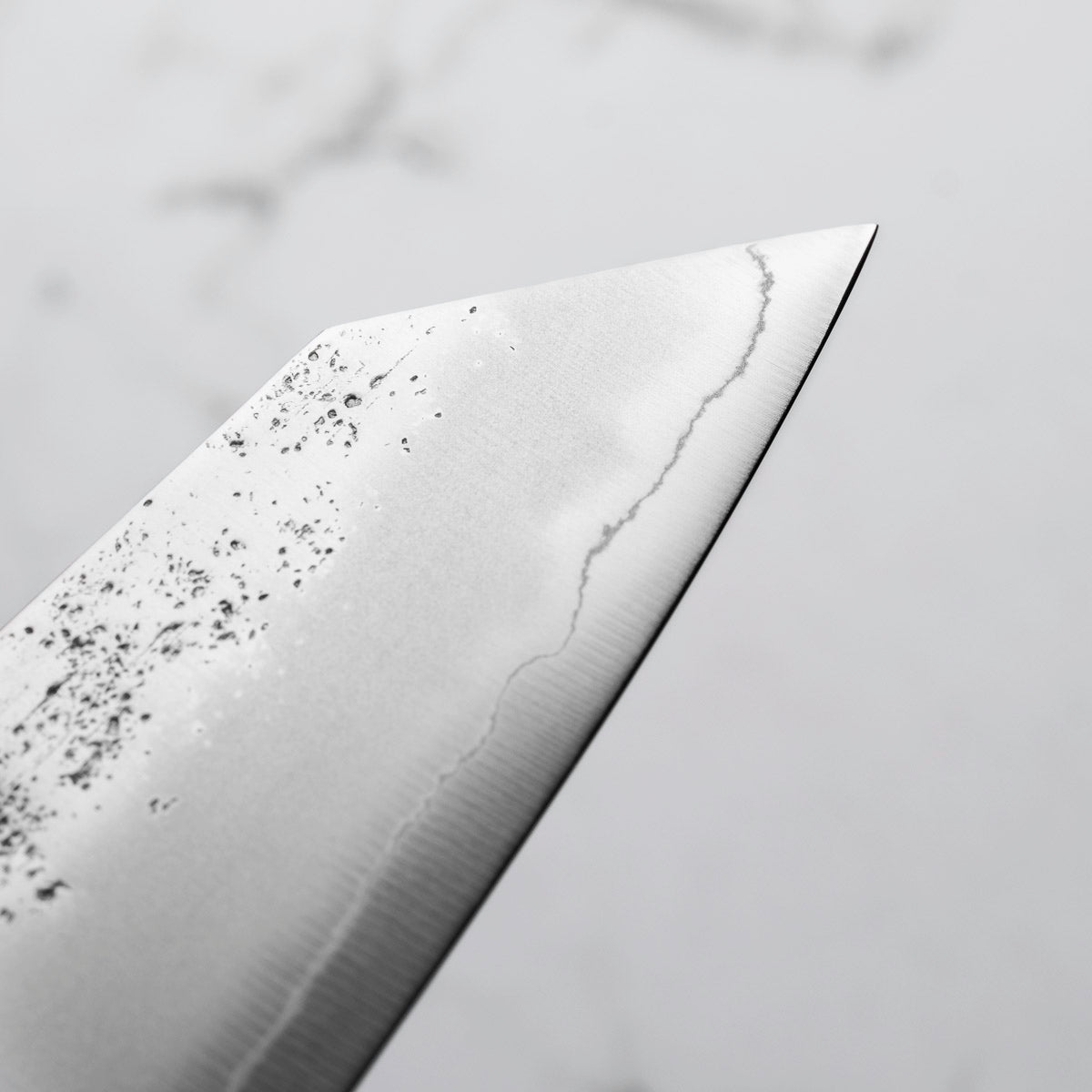 Japanese Ginsan steel, also known as Silver-3 or G3, is an underrated high-grade semi-stainless steel loved by many for being in the ‘goldilocks zone’ of knife steels. It holds a very respectable edge, but is effortless to sharpen. It is considered the semi-stainless version of White 2. It is the knife steel of choice for many home cooks and professional chefs alike.