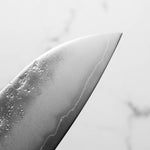 Japanese Ginsan steel, also known as Silver-3 or G3, is an underrated high-grade semi-stainless steel loved by many for being in the ‘goldilocks zone’ of knife steels. It holds a very respectable edge, but is effortless to sharpen. It is considered the semi-stainless version of White 2. It is the knife steel of choice for many home cooks and professional chefs alike.