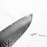 The Santoku knife, a classic in Japanese kitchens, translates to "three virtues," symbolizing its proficiency in slicing, dicing, and mincing. With a shorter, versatile blade and a balanced design, it's ideal for a range of tasks, from cutting meat to chopping vegetables, making it a beloved all-purpose tool.