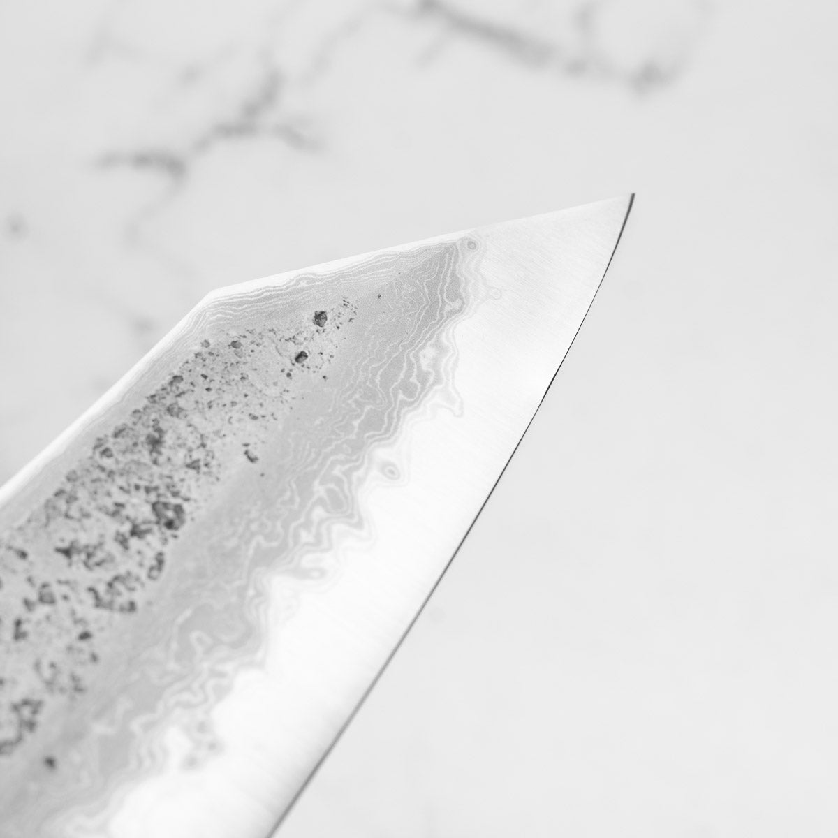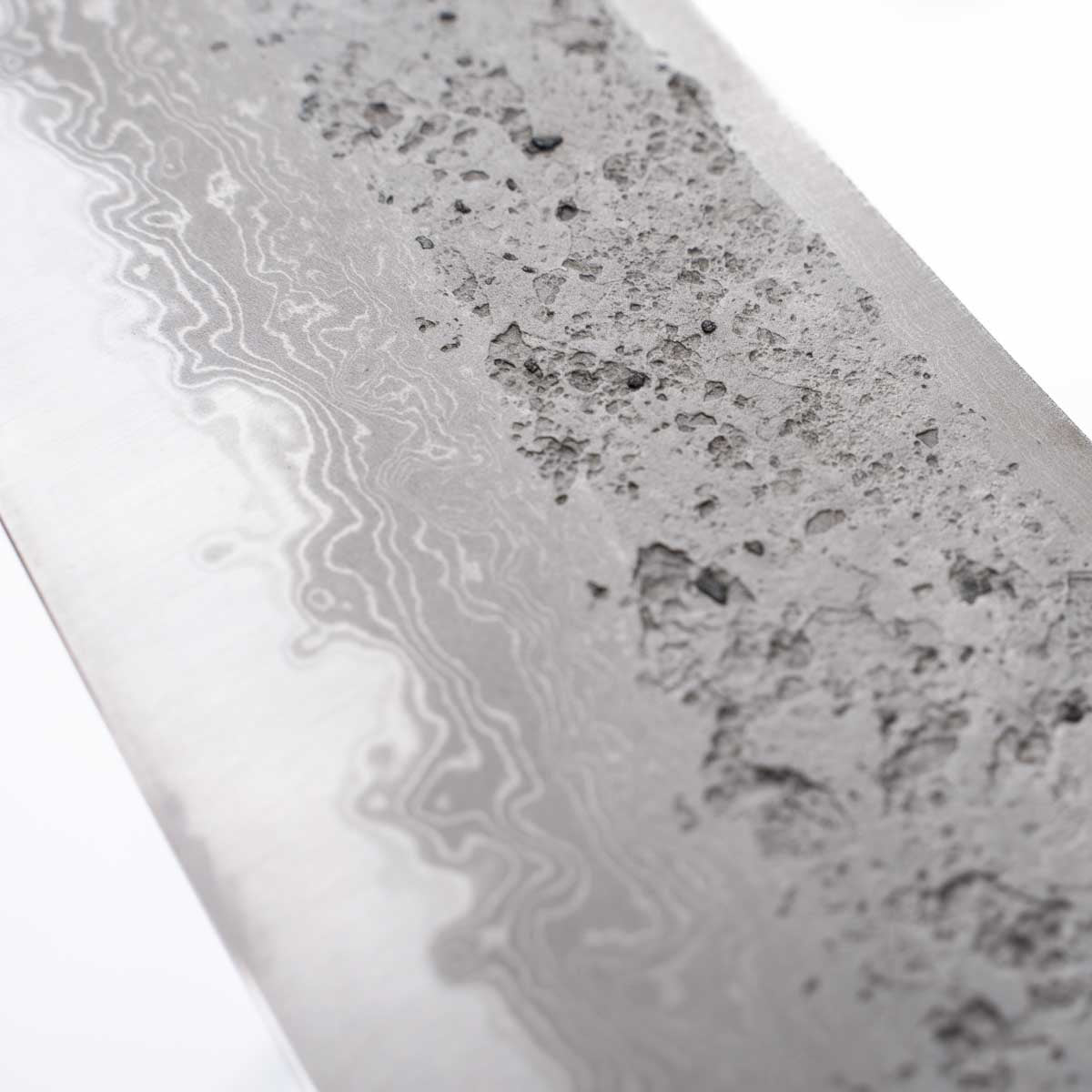 This knife is made from a high-carbon steel and as such, will require a little more care than a regular off-the-shelf knife. It must be dried shortly after use, as prolonged exposure to moisture can cause rust spots to appear. A very light coat of oil during storage also helps to prevent rust spots. A patina (colouration and seasoning of the steel) will occur with use.