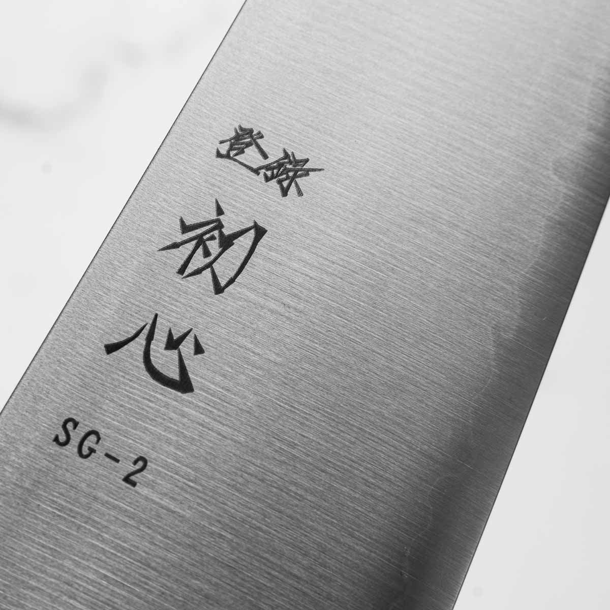 SG2 is considered by many as the best knifemaking steel in Japan. It gives all the benefits of carbon steel (very long edge retention, general ease of sharpening) without the carbon steel stresses of maintenance. It'll hold an edge for a long time, and can quickly and easily be refreshed on a whetstone or ceramic honing steel.
