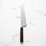 The Gyuto is the do-it-all, general purpose chef's knife. If you are looking for an all-rounder that can handle daily veg and protein prep and portioning, this is the one! A 210mm edge length is the most common, but try a 240mm if you prefer larger knives.